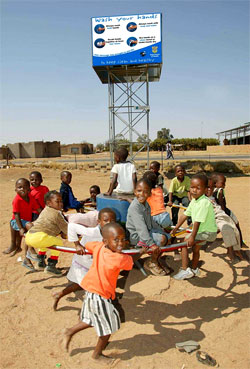 La roda funciona com una bomba d’aigua que s’acciona a partir dels jocs dels nens.