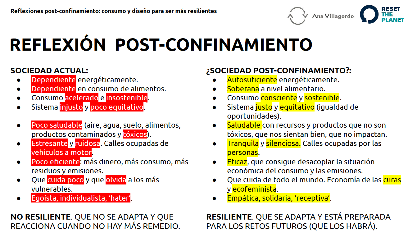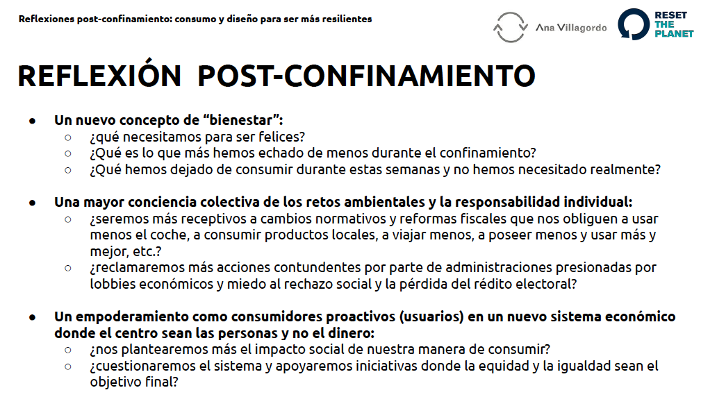 Conferencia sobre cómo el consumo y el diseño nos pueden hacer más resilientes. Reflexiones post-confinamiento (3a reflexión / 25º día de confinamiento del Coronavirus)