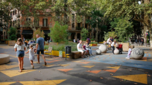 En aquest sentit, els refugis climàtics i les superilles esdevenen infraestructures socials de primer nivell, que compleixen més d’un objectiu: pacificar espais urbans, reduir els nivells de contaminació atmosfèrica i acústica a nivell local, reduir la presència de cotxes privats i promoure l’ús de l’espai públic per part de persones (amb la instal·lació de taules, bancs i espais de joc, a més de verd urbà), etc. Tots aquests aspectes són els que ja coneixem de les superilles però un dels efectes més importants d’aquesta acció urbanística tàctica, ara en perill d’extinció, és la creació d’espais de trobada. Espais que estàvem perdent davant del cotxe i tota la seva parafernàlia relacionada (places d’aparcament i carrers asfaltats) i que hem recuperat en algunes zones de la ciutat de Barcelona. I què ha passat en aquests espais recuperats? Que la gent s’hi està més, s’hi relaciona més, crea comunitat, sent que la ciutat és més seva, la cuida més i la valora més.