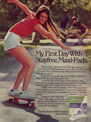 La publicitat sempre ha volgut cercar la llibertat, el poder seguir essent una mateixa tot i tenir la regla (poder muntar a cavall, cosa que fem sovint, és clar). Però quan tenim la regla som nosaltres mateixes més que mai, és la nostra part animal, la senyal de que som fèrtils, font de vida. Estaria bé una publicitat centrada en fer-nos sentir més dones que mai utilitzant productes com les compreses o els tampons, enlloc de reforçar la necessitat de ser perfectes, impol·lutes i eternament felices.
