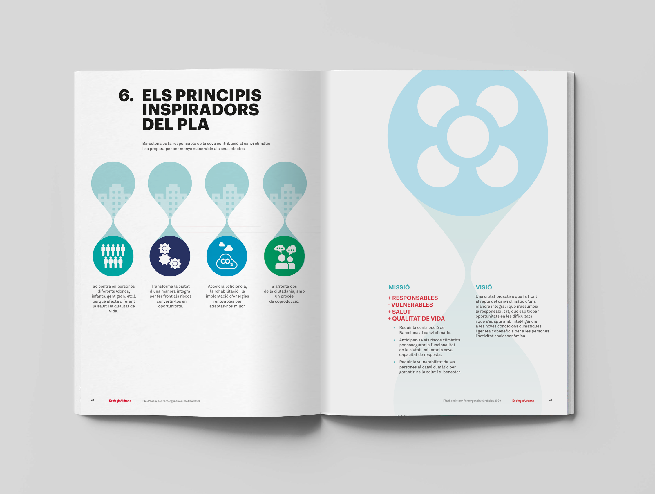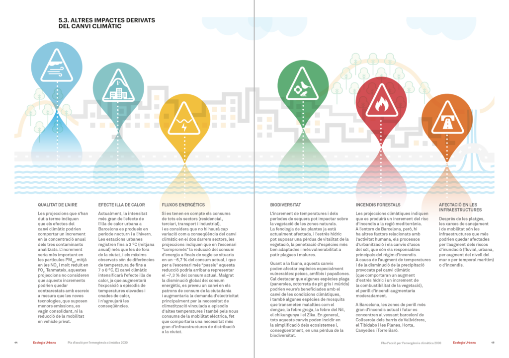 I per acabar, fer tot això de manera atractiva a nivell visual: un altre repte. Aquí hem comptat amb Lapage Original. I el resultat salta a la vista. Perquè la informació ha de ser rigurosa però ha de poder arribar a tothom. Aquest era l'objectiu i jo crec ho hem aconseguit. Ho podeu comprovar consultant tant el Pla d'Acció per l'Emergència Climàtica 2030 com el seu Informe de seguiment 2020.