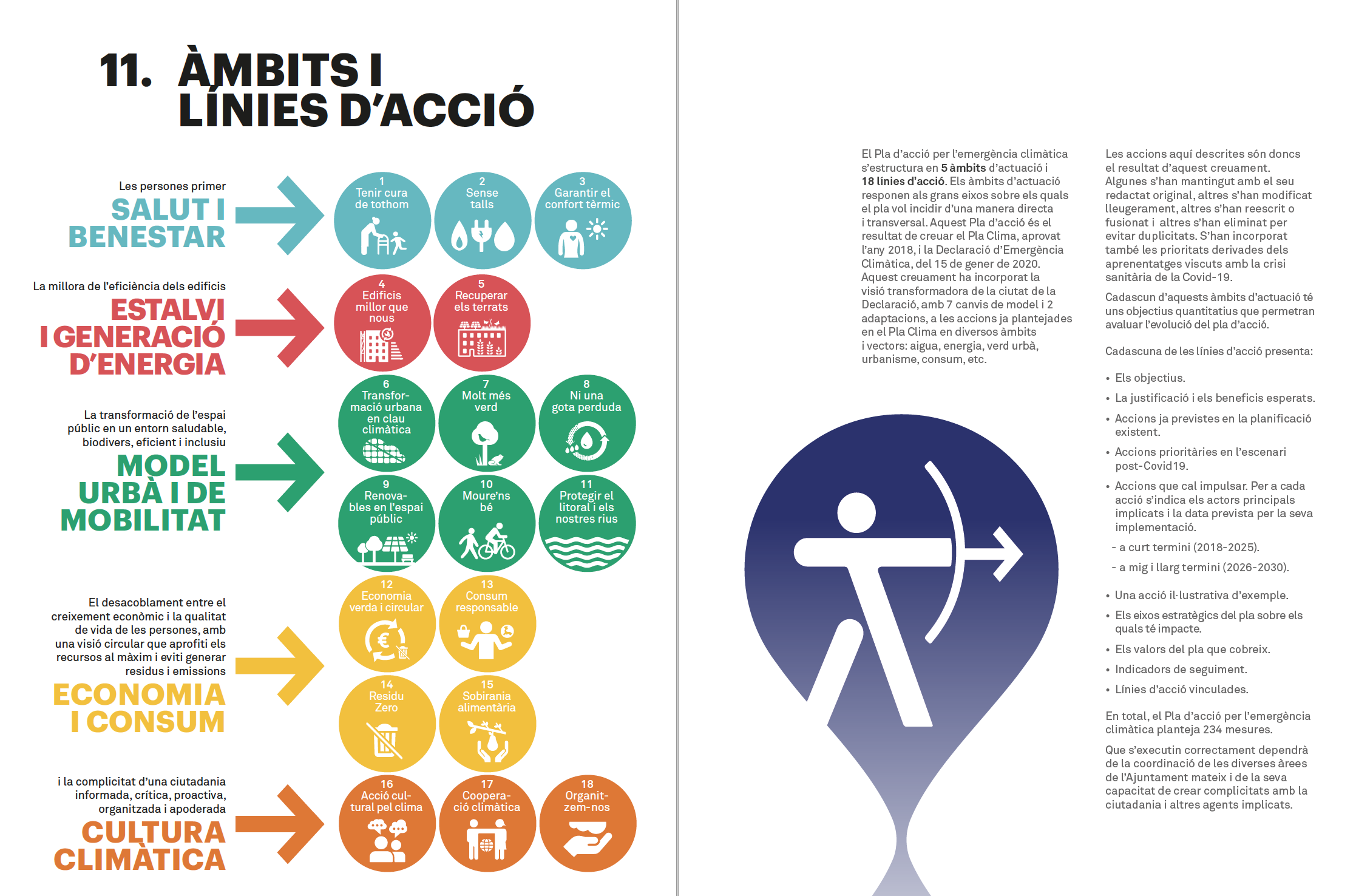 Aquesta situació d’emergència climàtica ens planteja el repte de portar a terme una gran transformació de ciutat, amb 7 canvis de model i 2 adaptacions necessàries que, fusionades a les 18 línies d’acció del Pla Clima i els seus 5 àmbits d’acció; se sumen en el Pla d’acció per l’emergència climàtica en l'horitzó 2030. Un Pla amb un total de 234 accions que afecten a tota la ciutat, des de totes les vessants, i que per tant s'han de coordinar de manera transversal a tot l'Ajuntament.