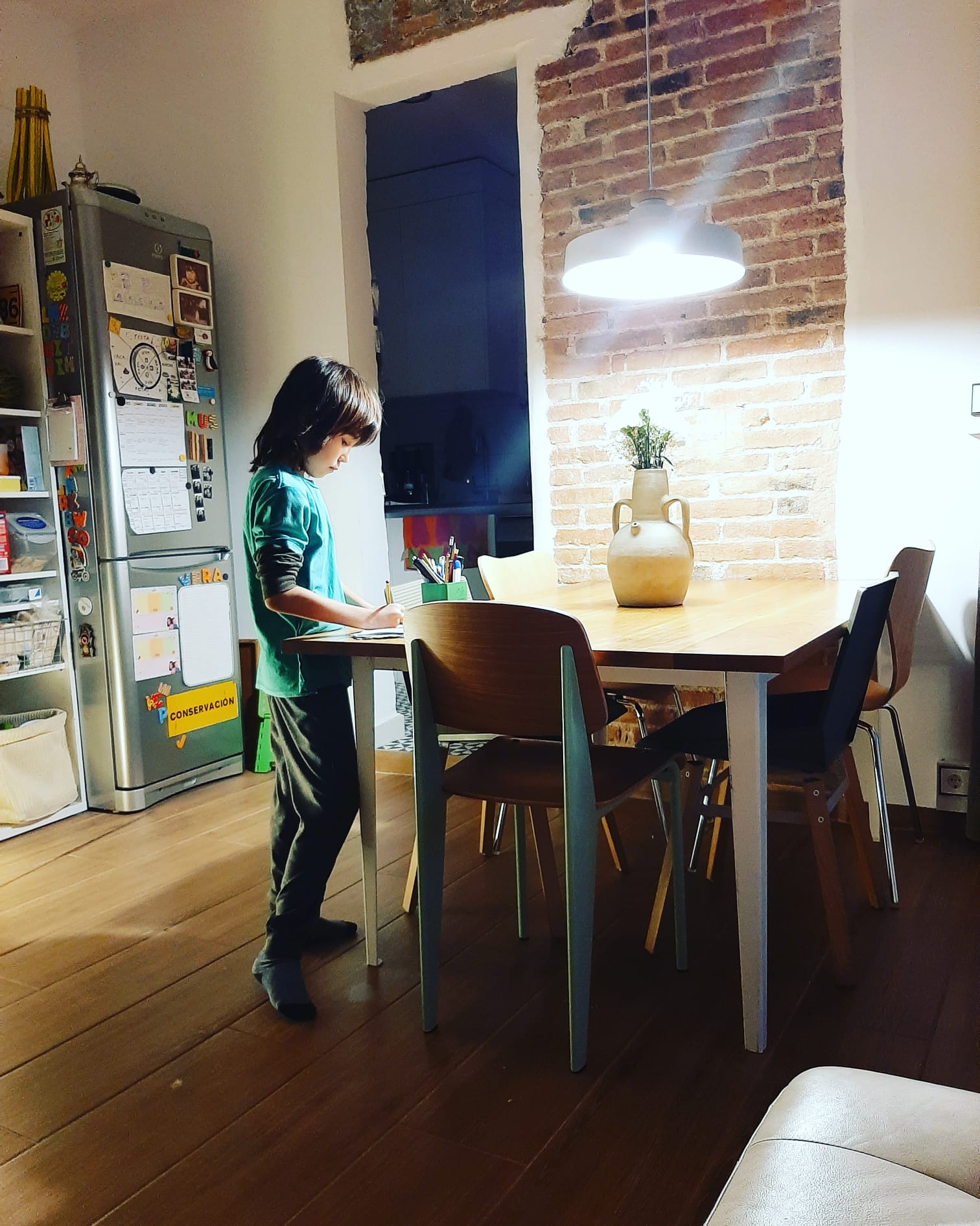 Segueixo amb la meva monòtona rutina que no dona per fer una sitcom però que m’ajuda a donar sentit a cada dia que passa. Si no s’ha de comprar res (intentem baixar a comprar només dos cops a la setmana), tots ens quedem a casa. Arriba l’hora de dinar i dinem. Intentem seguir un menú que vam dissenyar diumenge passat —l’hem complert en un 50 % dels casos— perquè ens ajuda a tenir idees de menjars equilibrats. Està penjat a la nevera, recordant-nos que cada 3 o 4 hores toca menjar! I pel que fa a les rutines, el divendres 13 de març, el primer dia sense escola, en vam dissenyar unes que jo diria que no hem seguit cap dia. Però les tenim, també a la porta de la nevera, tot i que no han funcionat perquè ens havíem complicat massa. Les rutines han de ser més clares i han de ser recordables. Si les has d’anar a mirar sovint, ja no funcionen; o almenys a nosaltres, no ens funcionen. Tu treballes al matí i jo a la tarda, dia per altre. Els nens fan feines de tal hora a tal altra. I la resta, temps lliure, de lectura, d’esport, de jocs de taula, etc.